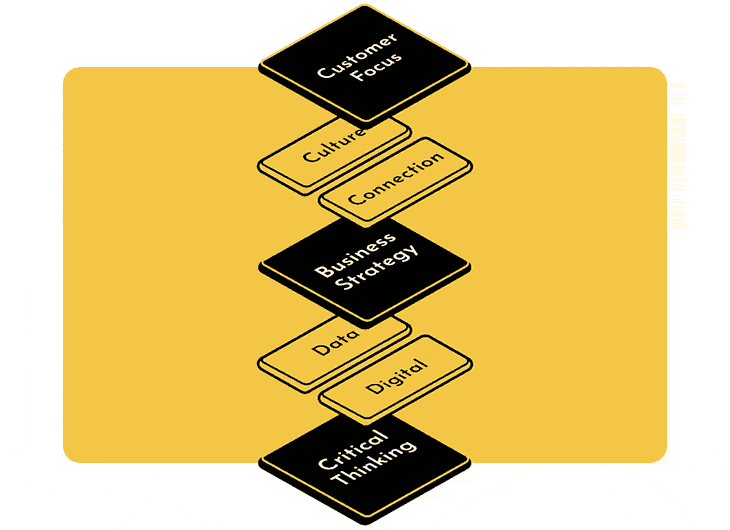 I have found that there are 5 distinct layers that contain the key skills required to empower people, deliver growth and navigate ambiguity with bold ideas.